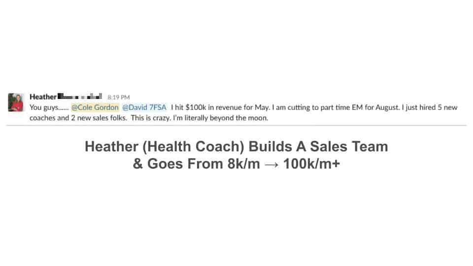 The biggest risk in hiring A-Players? “Ramp-time.” AKA how long it takes a closer to go from zero → KPI. The opportunity cost of having someone stuck in sales purgatory where they’re at 15% instead of 30% is huge. Our “on-ramp” process downloads everything I learned on my way to doing 400K/m+ solo into your closers as quickly as possible.